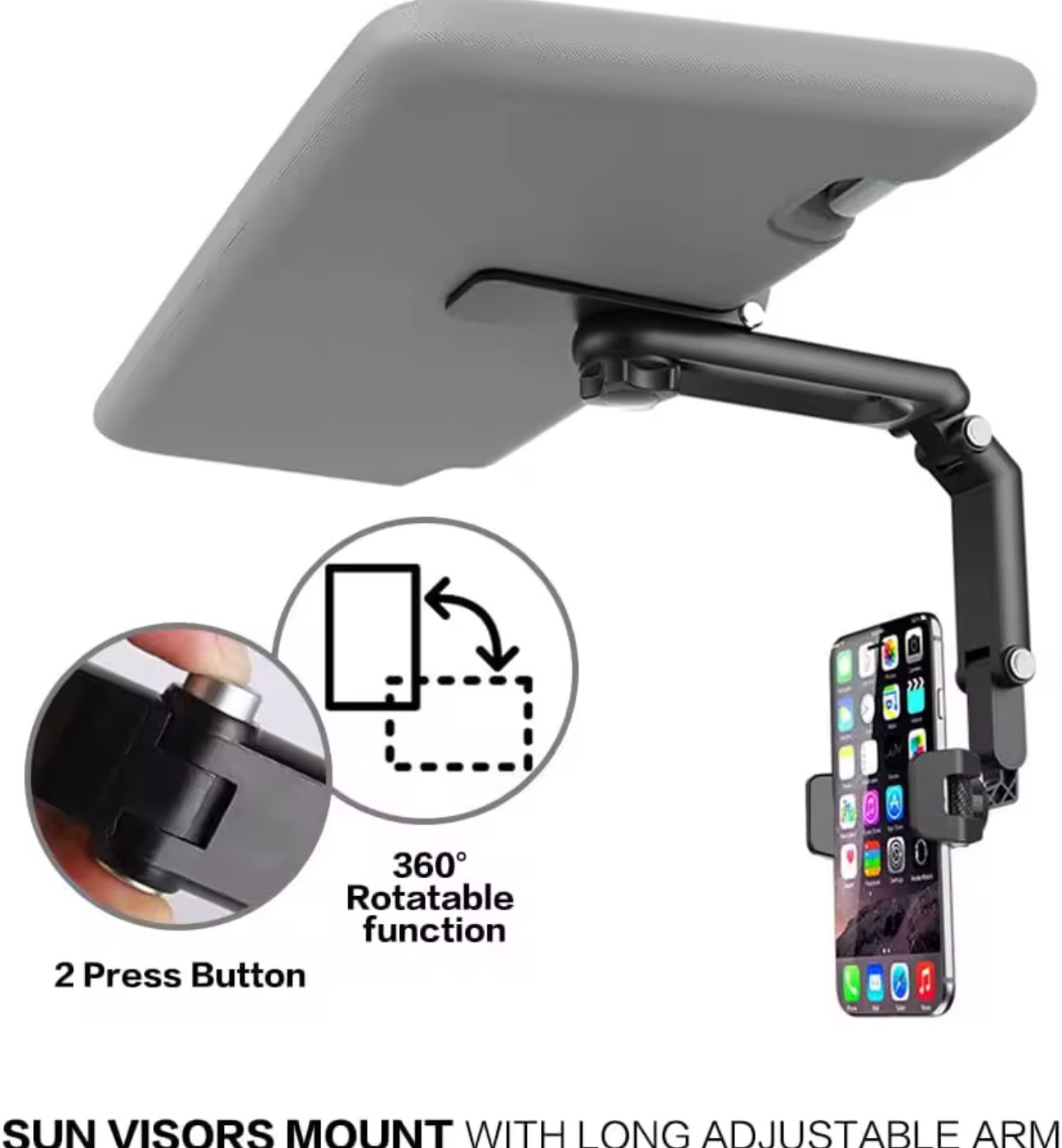 Be the first to review “Sun Visor Phone Holder for Car Multifunctional 360° Rotating”