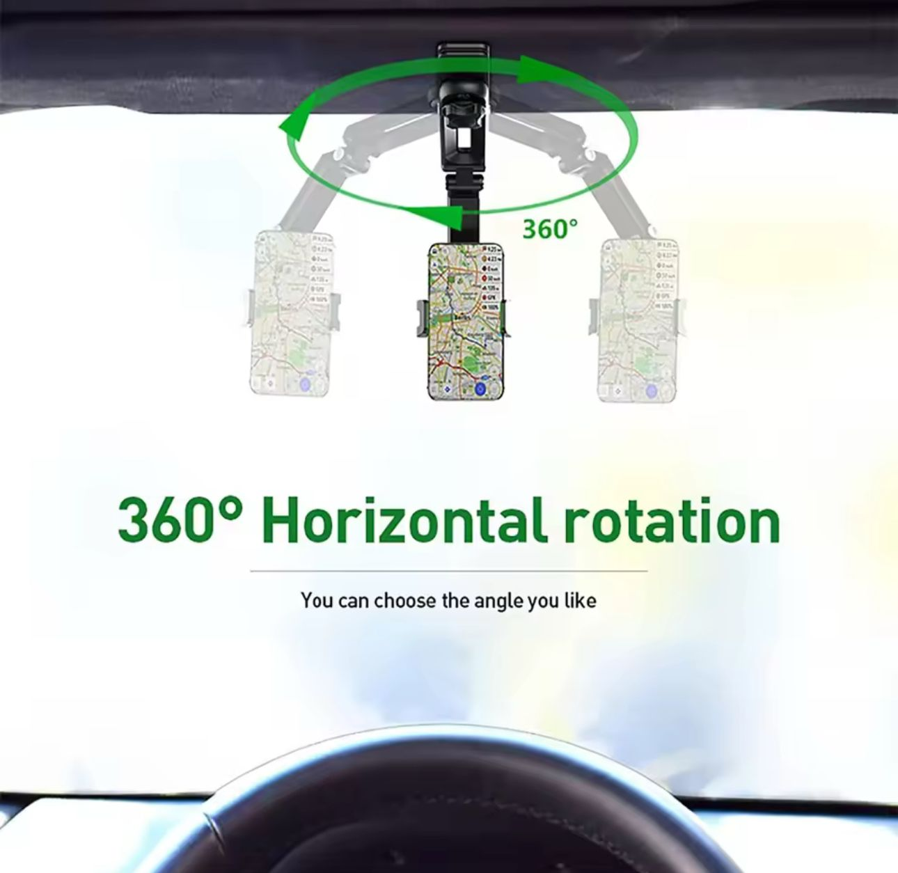 【360° Rearview Mirror Phone Holder】- Adjustable Angle, Car phone holder can rotate 360 ° to meet the needs of different sight lines; Meanwhile, it also supports horizontal and vertical screen switching, the navigation angle can be adjusted at will, which is convenient for you to plan your route and drive better.